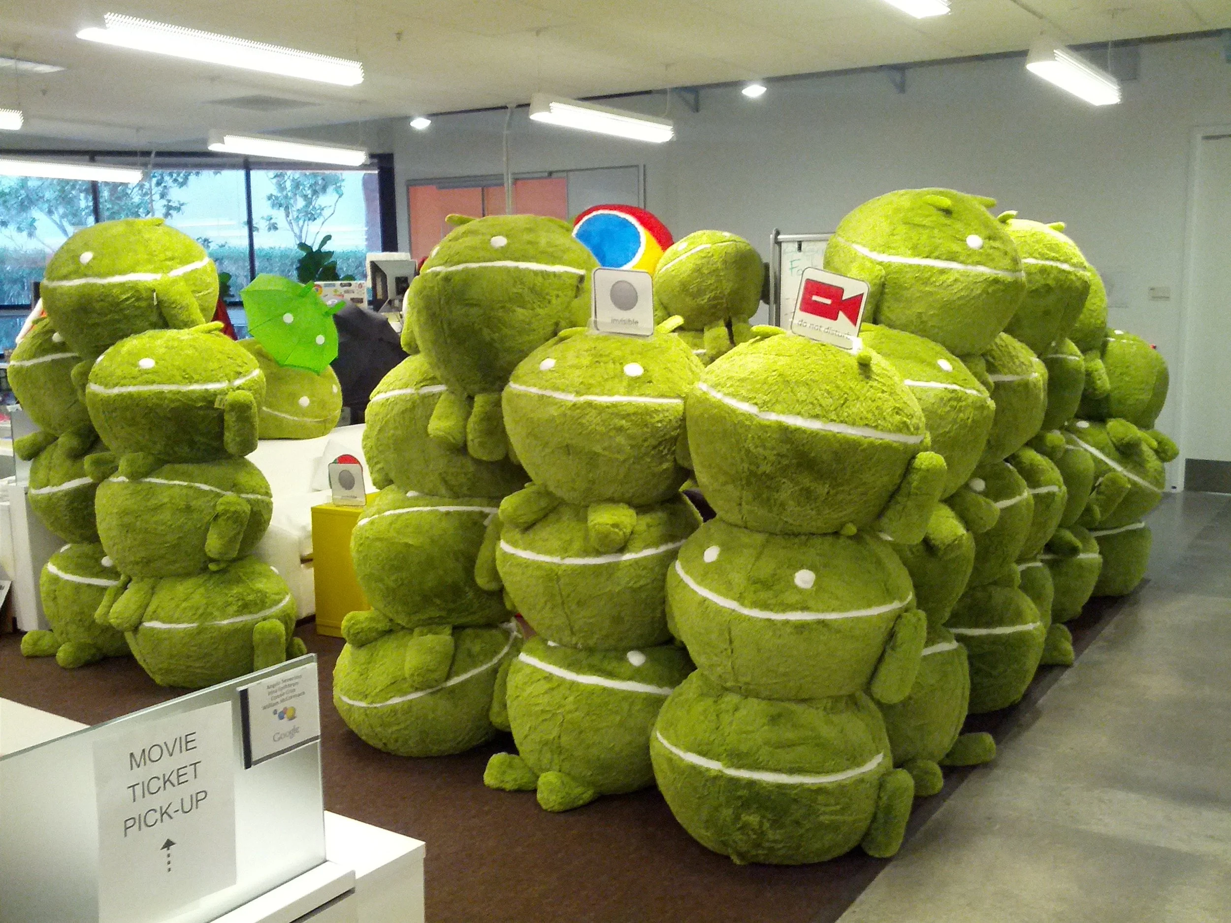 To begin, I conducted baseline decibel readings in the standard open office setup and then assessed how our inventory of Android beanbags could help reduce noise levels. This led to the creation of "Fort Droid," a structure not only effective in providing an optimal working environment but also captured the attention of CBS during its coverage.